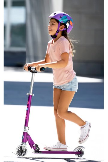 El Micro Sprite LED Lila combina ligereza, seguridad y estilo con ruedas LED que aportan diversión y visibilidad extra. Ideal para iniciarse en el mundo de los patinetes de 2 ruedas.